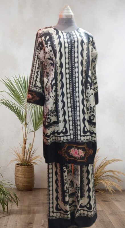 Black Digital Print Silk Coord Set