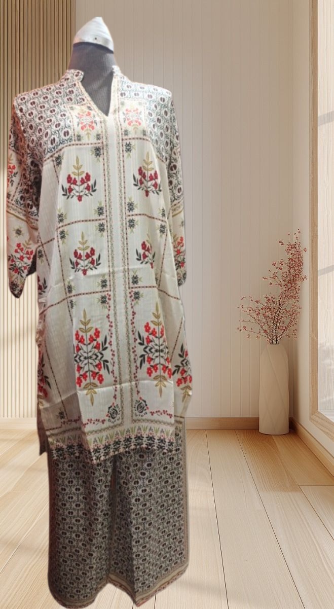 Elegant and minimal, this 2PC coord set in a soft off-white shade features a stylish top paired with flowy palazzo pants. Designed for comfort and grace, it’s a perfect blend of simplicity and chic appeal.