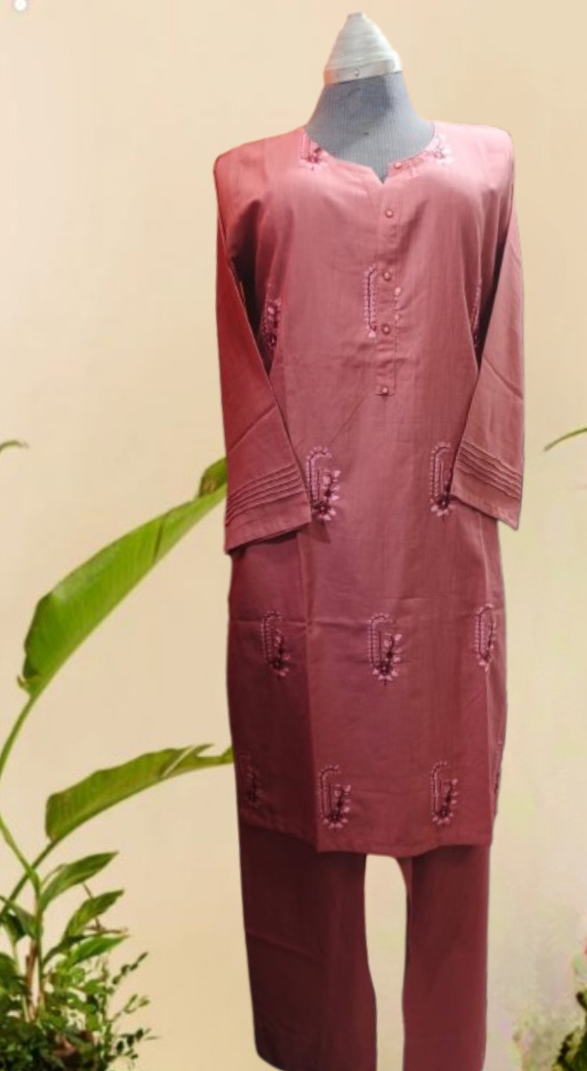 Elegant and stylish, this 2PC coord set in a soft pink shade is beautifully enhanced with delicate embroidery for a refined look. The matching top and trouser are designed for both comfort and chic appeal, making it a versatile choice
